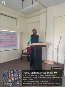 Mr. Prafull Pawar, a Research Associate at MIT World Peace University, was invited as the resource person for the session. He delivered an insightful talk on the importance of adopting a sustainable lifestyle in today’s rapidly changing world. He emphasized how individual actions play a crucial role in protecting the environment and highlighted practical ways to incorporate sustainability into daily life.