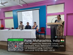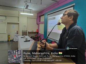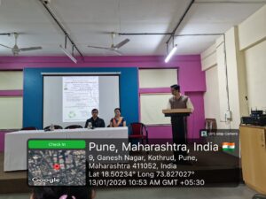 An Awareness Session on Plastic Waste and E-Waste Management and Its Environmental Impact was organized for the students in association with ServCare, Pune on 13 January 2026 at 10.30 a.m. The session was conducted by Mr. Avinash Jadhav, who is currently associated with Muskmelon Envtech Pvt. Ltd., where he has been handling operations and digital product initiatives for the past four years. With an overall experience of 14 years across automotive, electronics, IT, and consulting sectors, Mr. Jadhav shared valuable industry-oriented insights.