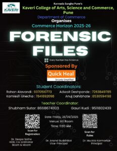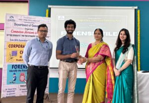 Forensic Files Competition was conducted on 26th September 2025. The competition aimed to test students’ analytical and fraud-detection skills through multiple stages. It consisted of three rounds: Round 1 – MCQ Quiz: An elimination round where participants attempted multiple-choice questions. The top 5 students were selected for the next round. Round 2 – PPT-based MCQ Quiz: Questions were displayed on a presentation, and participants were required to answer orally. The top 4 participants qualified for the final round. Round 3 – Case Study Challenge: This round had two sub-sections: Oral Questions: Participants had to respond immediately to questions asked orally. Case Study Analysis: Participants were given case studies to solve and present their solutions.
