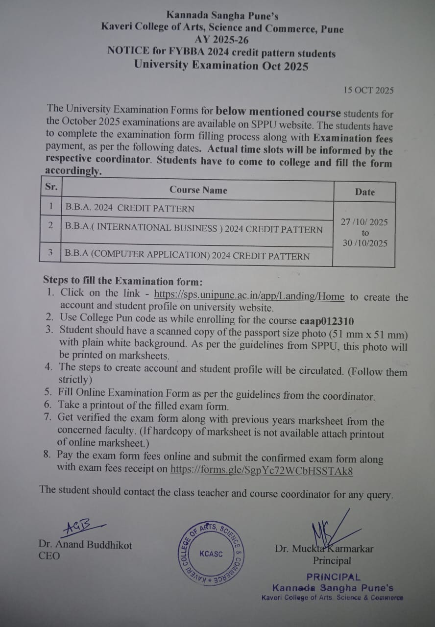 NOTICES REGARDING EXAM FORM FILLING OCT/NOV 2025