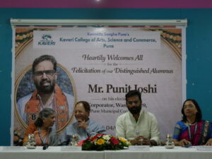 Kaveri College of Arts, Science and Commerce, Pune, proudly organized a felicitation ceremony on 4th February 2026 to honour its distinguished alumnus Mr. Punit Joshi on the occasion of his election as Corporator, Ward No. 29, Pune Municipal Corporation. The program was conducted in the AV Room in the presence of management members, faculty, students, staff and invitees.