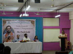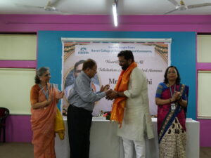 Mrs. Malati S. Kalmadi, Secretary of the institution, congratulated Mr. Joshi and remarked that the college does not wish to limit its association to felicitation alone. She proposed that Ward No. 29 could be developed as an “Experimental Lab”. She emphasized that such collaboration would create a meaningful bridge between academics and real-life governance, benefitting both the ward and the institution.