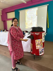 The activity was further enriched by student volunteer Ms. Sudeeksha Gaikwad, who guided the participants on an emotional journey through her narration, evoking nostalgia and emphasizing the intimate connections that letters create. Inspired by her words, all participants, including students, teachers, and the I/C Coordinator Dr. Pooja Ambole, took part in the activity by penning down their feelings. The classroom transformed into a space of quiet reflection, as emotions flowed onto paper. Once completed, each participant joyfully dropped their letter into the classroom’s letter box, and a total of 31 letters were later posted in a nearby post box to begin their journey.