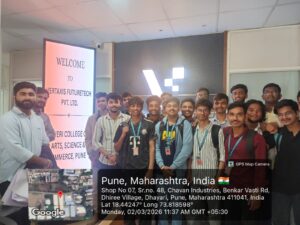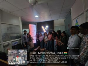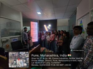 The Department of B.Sc. Computer Science of Kaveri College organized an Industrial visit to Vertaxis Futuretech, Pvt Ltd, Dhayari, Pune on Monday 2nd March 2026. This visit was arranged so that students can understand the manufacturing process and technology behind electronic displays and to observe the application and customization of display solutions. It helped students to gain practical knowledge about industry practices. Mr. Vinod Deshmukh, and Mr. Kedar Hushing – Directors of Vertaxis Futuretech, Pvt Ltd, Narhe, Pune interacted with students and informed about their journey as an successful entrepreneur.