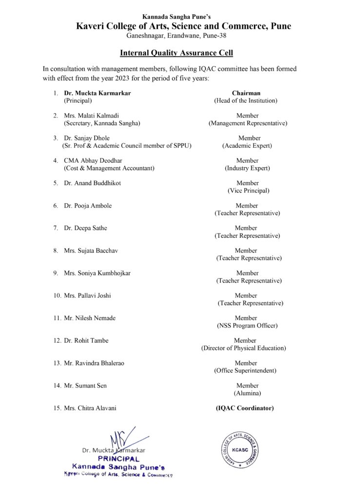 Home IQAC Committee Internal Quality Assurance Cell (IQAC) IQAC Committee Annual Quality Assurance Report (AQAR) IQAC Minutes and Action Taken Reports NAAC SSR Documents DVV Clarification NAAC Appeal Re-DVV Re Appeal DVV Verification IQAC Newsletter Best Practices Institutional Distinctiveness Other Documents Student Satisfaction Survey AQAR Documents NAAC Certificate IQAC Committee