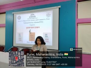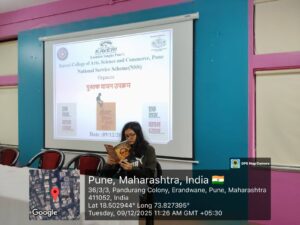 The National Service Scheme (NSS) Unit of Kaveri College of Arts, Science and Commerce organized a Pustak Vachan Activity on 9th December 2025 with the objective of inculcating reading habits among students, enhancing knowledge, improving thinking abilities, and developing language skills.