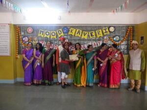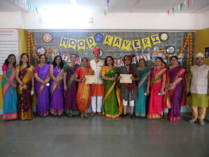 The event was graced by the presence of Principal Dr. Muckta Karmarkar and Vice Principal Dr. Anand Buddhikot, whose encouragement added dignity to the celebration. The competition was judged by Ms. Pallavi Joshi and Ms. Sonali Kadam, who appreciated the creativity, confidence, and authentic representation of culture by the participants. Winners were felicitated with certificates and cash prizes, making the event highly motivating and memorable.