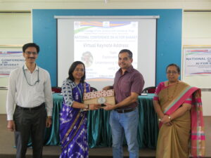 The second session was delivered by Mrs.Annie Rajan, Associate Professor at Dhempe College of Arts and Science, on the topic “AI in Education and Academics.” She explained the role of Artificial Intelligence and Natural Language Processing in understanding human language and supporting education and linguistic research. She also highlighted her work on developing digital tools and linguistic resources for the Konkani language.