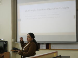 The third session was conducted by Mrs. Savitha Bhat, Senior Scientist at Tata Consultancy Services, on “AI for Industry Research.” She explained how AI is transforming industrial research by solving real-world problems through structured AI pipelines and advanced technologies. She also discussed the importance of practical implementation and collaboration between human expertise and machine intelligence.