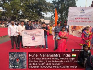A grand rally was organized by Savitribai Phule Pune University (SPPU) on the occasion of Shiv Jayanti with the objective of strengthening patriotism, leadership qualities, and social awareness among youth. The rally commenced in an energetic atmosphere from the historic Shaniwar Wada. A large number of students, youth groups, and citizens actively participated in the event. Patriotic slogans, awareness messages, and cultural enthusiasm created an inspiring environment throughout the rally route.