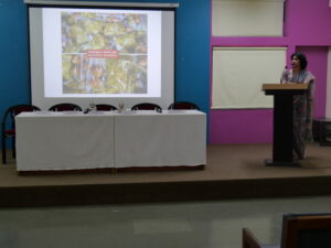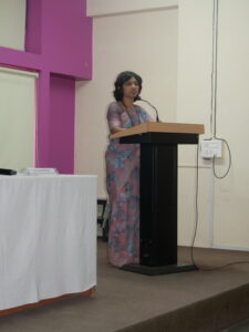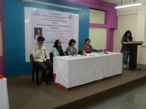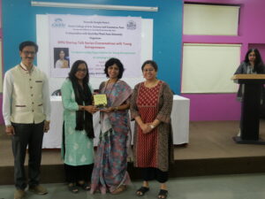 At the beginning of the session, Prof. Soniya Kumbhojkar explained the main objective of the lecture series and outlined the program. Ms. Gayatri Gaikwad, founder of Gayatri Foods and Catering, started the lecture by inspiring students with her own experiences as well as with her courageous attitude of overcoming situations with determination. She presented to the students the various experiences, before starting the catering business and her willingness to work hard and adapt to circumstances. While starting the catering business, she explained the various management lessons and the challenges she faced through numerous examples.