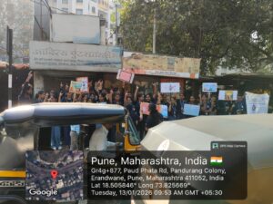 As part of the drive, a public awareness rally was conducted in and around the college campus as well as nearby localities. The rally followed the route from the college campus to SNDT College, then from SNDT to Dashabhuja Ganpati, and finally returned to the college. Volunteers raised awareness through slogan chanting, poster exhibitions, and direct interaction with the public, explaining the importance of voter registration, the voting process, and the responsibility of making informed choices.