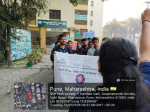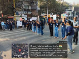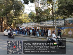 As part of the drive, a public awareness rally was conducted in and around the college campus as well as nearby localities. The rally followed the route from the college campus to SNDT College, then from SNDT to Dashabhuja Ganpati, and finally returned to the college. Volunteers raised awareness through slogan chanting, poster exhibitions, and direct interaction with the public, explaining the importance of voter registration, the voting process, and the responsibility of making informed choices.